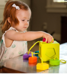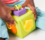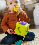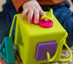 Grab, explore, sort, and discover! Little hands are immediately drawn to the six vibrant, textured, rubbery, tethered shapes. Explore their contours, give them a squeeze, and even try chewing on them - Made of 100% food-grade silicone, these shapes are great for everything from tactile exploration to teething! Then - Ready to start sorting? The cutout spaces of the cube each only match one of the rubbery tethered shapes. Fit the square into the square, the circle into the circle, the oval into the oval, the triangle into the triangle - Little smiles light up bright with each shape that slides perfectly into place! Fun to feel, beautiful to admire, and amazingly durable so you never lose a single shape, the OombeeCube truly is early tactile learning perfected.